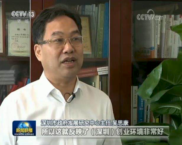 深圳市政府发展研究中心主任 吴思康:这也反映了(深圳)创业环境非常好,政府提供了很多创业的辅助措施,包括建立了好的创业的服务体系,包括资金的支持体系,这个数字都是非常巨大的。