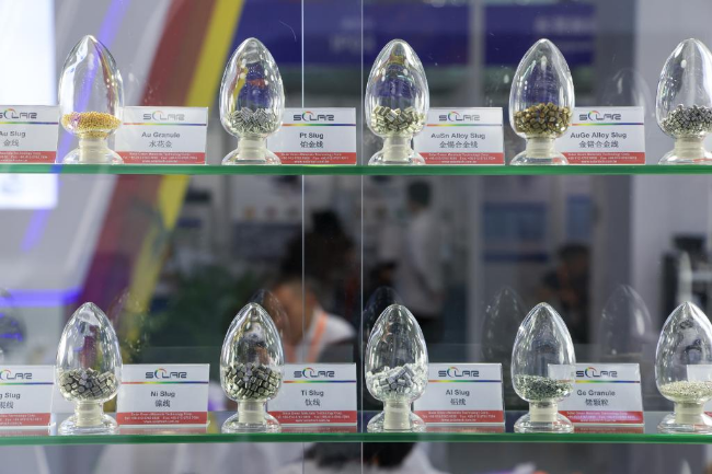 15日、会場に展示された機能性材料。(深圳=新華社記者/毛思倩)