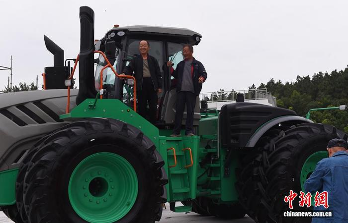 広い耕作地に設置された先端スマート農業機械が人々の注目を集めた。臨工集団のハイブリッドトラクターは最高出力が600馬力を超え、雷沃重工のコンバインの収穫量は毎秒16キログラム以上に達し、山東五征集団のコンバインハーベスターは収穫から倉庫に戻るまでのプロセスをシームレスで結び、耕作地での作業をより効率的にするという。