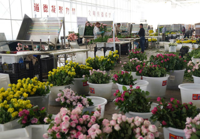 2025年3月24日,工人在云南丽江现代花卉产业园包装鲜花。新华社发(梁志强摄)