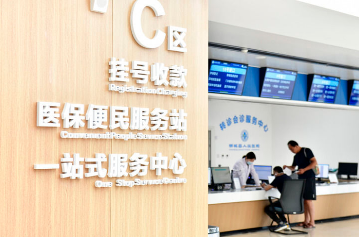 2025年8月21日,在山东省菏泽市郓城县人民医院医保便民服务站,居民在办理医保业务。新华社记者 郭绪雷 摄
